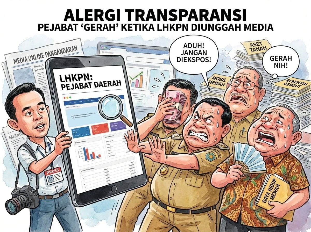 Ada paradoks yang menggelikan sekaligus memprihatinkan di lorong-lorong birokrasi kita hari ini. Di satu sisi, para pejabat berlomba-lomba memamerkan slogan “Berakhlak”, “Transparan”, dan “Anti-Korupsi” di baliho-baliho besar yang menyesaki perempatan jalan. Namun, di sisi lain, wajah mereka mendadak merah padam, gerah, bahkan meradang, ketika Laporan Harta Kekayaan Penyelenggara Negara (LHKPN) milik mereka diulas dan disajikan ke publik oleh media.