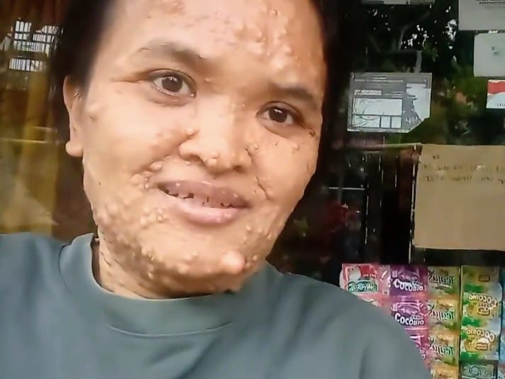 Namun, keramahan itu tak bisa menutupi kondisi fisik yang memprihatinkan. Sekujur tubuh perempuan warga Desa Babakan, Kecamatan Pangandaran ini dipenuhi benjolan-benjolan daging yang masif, mulai dari wajah, lengan, hingga kaki.