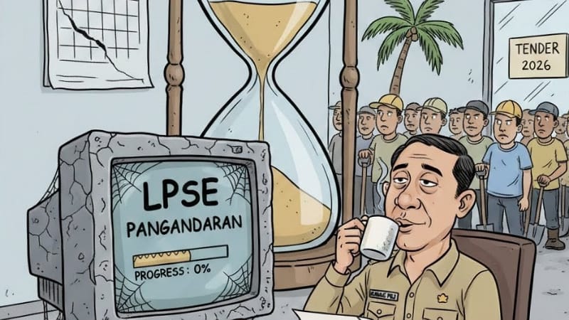 BERITA PANGANDARAN – Memasuki bulan kedua tahun anggaran 2026, denyut pengadaan barang dan jasa di lingkungan Pemerintah Kabupaten (Pemkab) Pangandaran, Jawa Barat, terpantau masih lesu. Hingga pekan pertama Februari, belum ada satu pun paket pekerjaan fisik yang tayang di sistem tender, sebuah kondisi yang kontras dengan daerah tetangga yang mulai tancap gas melaksanakan tender.